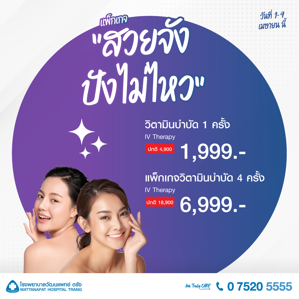 - โปรแกรมวิตามินบำบัด 1 คอร์ส (4 ครั้ง) ราคา 6,999 บาท / ปกติ 18,900 บาท