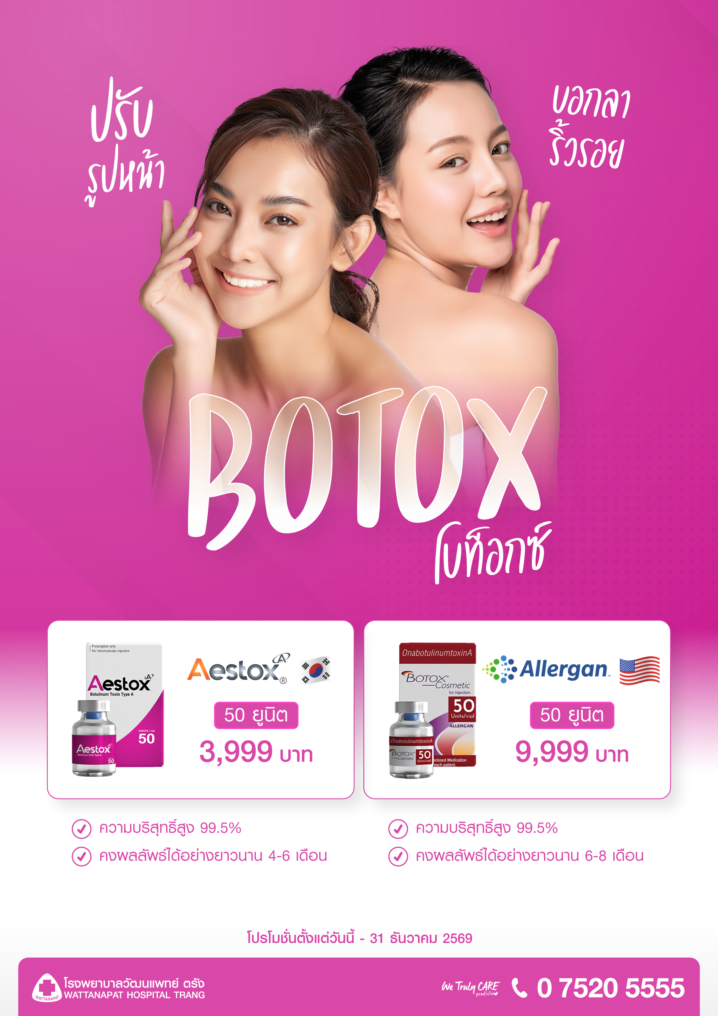 เป็นการนำสาร Botulinum Toxin A (Botox)มาฉีดเข้าที่ผิวหนังบริเวณใบหน้าเพื่อลดเลือนริ้วรอยแห่งวัย และปรับรูปหน้าให้เรียวกระชับตามใจต้องการ ซึ่งผู้ใช้จริงหลายคนพูดเป็นเสียงเดียวกันว่า โบท็อกซ์นั้นสามารถให้ผลลัพธ์ที่น่าพึงพอใจได้ภายในระยะเวลาที่รวดเร็ว อีกทั้งยังสร้างความมั่นใจให้กับผู้มีปัญหาได้เป็นอย่างดี