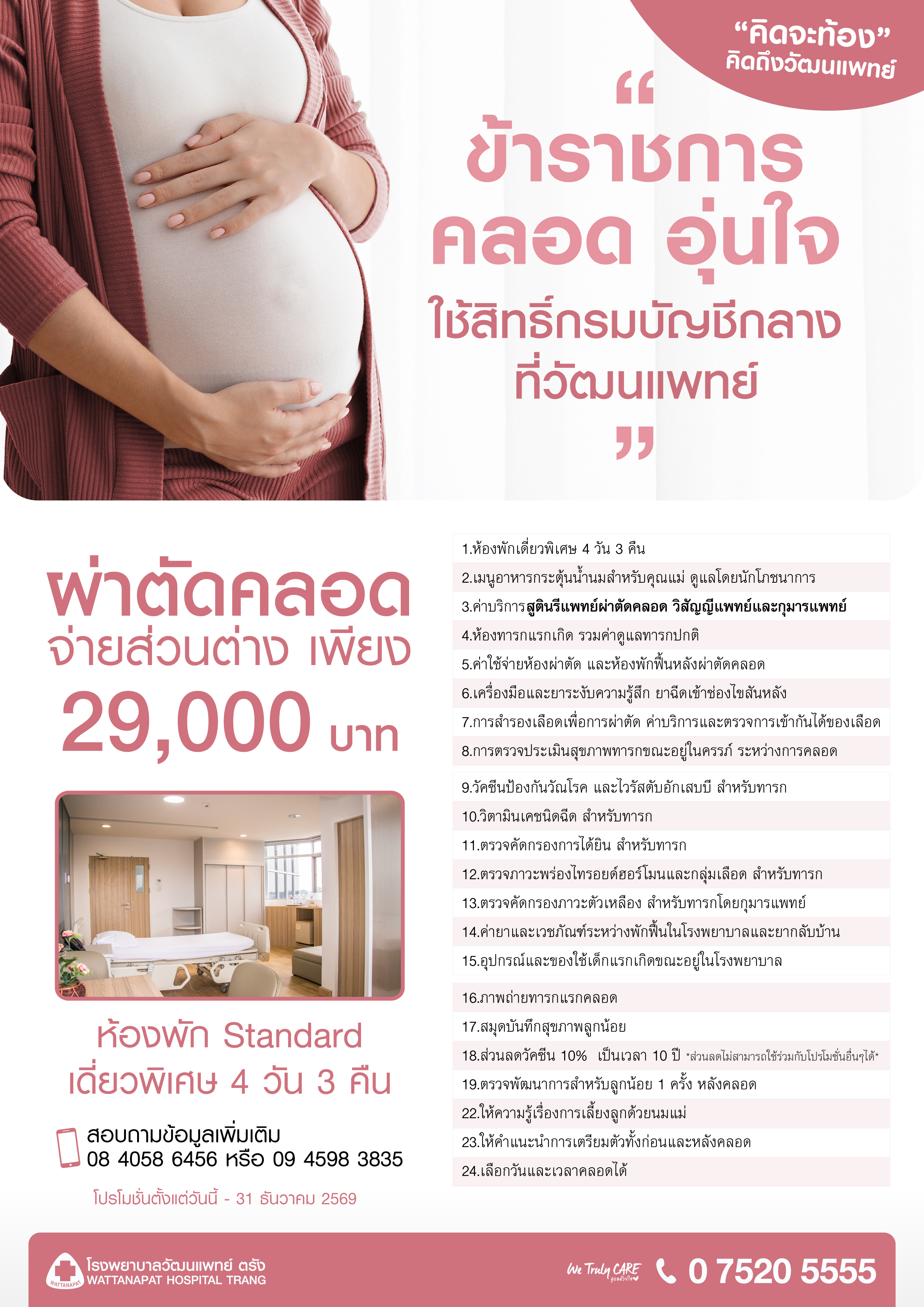 แพ็กเกจผ่าคลอดสิทธิข้าราชการ เบิกจ่ายตรงกรมบัญชีกลาง