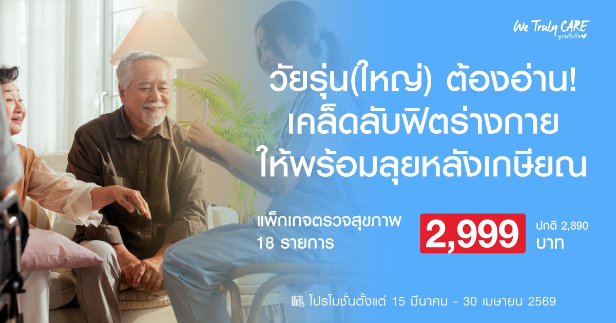 โปรโมชั่นพิเศษ! เข้าตรวจได้ยาวๆ ถึง 31 กรกฎาคม 2569 📍 หมายเหตุ: กรุณางดอาหารและเครื่องดื่ม 8-10 ชั่วโมงก่อนตรวจเพราะชีวิตหลังเกษียณคือช่วงเวลาที่สนุกที่สุด... มาเช็กความพร้อมแล้วออกไปลุยโลกกว้างกันเถอะครับ!
