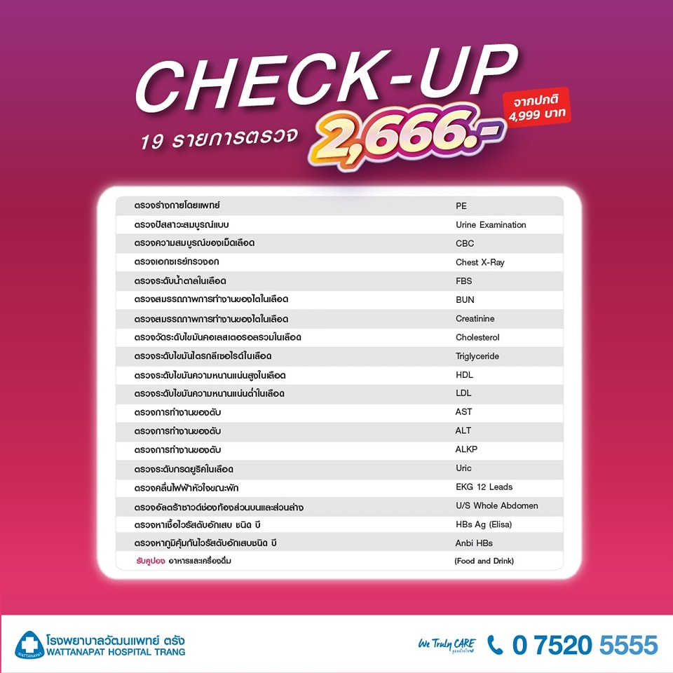 - ตรวจคัดกรองมะเร็ง (มะเร็งเต้านม มะเร็งปากมดลูก มะเร็งลำไส้ใหญ่)