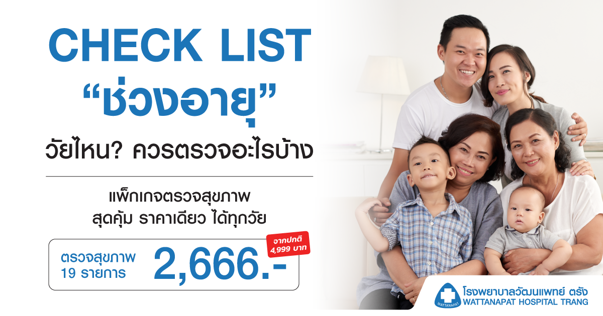 จะเห็นได้ว่า รายการตรวจสุขภาพของแต่ละวัยจะมีทั้งเหมือนและแตกต่างกัน หากยังเลือกไม่ถูกว่าควรตรวจอะไรบ้างดี เราสามารถปรึกษาแพทย์หรือเลือกแพ็กเกจตรวจสุขภาพตามช่วงอายุไว้ก่อน แล้วค่อยเลือกตรวจรายการอื่นๆ เพิ่มเติมตามความเสี่ยงของตนเอง ก็จะช่วยให้เรารู้ถึงสภาพร่างกาย เพื่อการดูแล หรือได้รับการรักษาที่เหมาะสม จะได้มีคุณภาพชีวิตที่ดี สามารถดูแลตนเอง และใช้ชีวิตได้อย่างใจปรารถนาในทุกช่วงอายุ