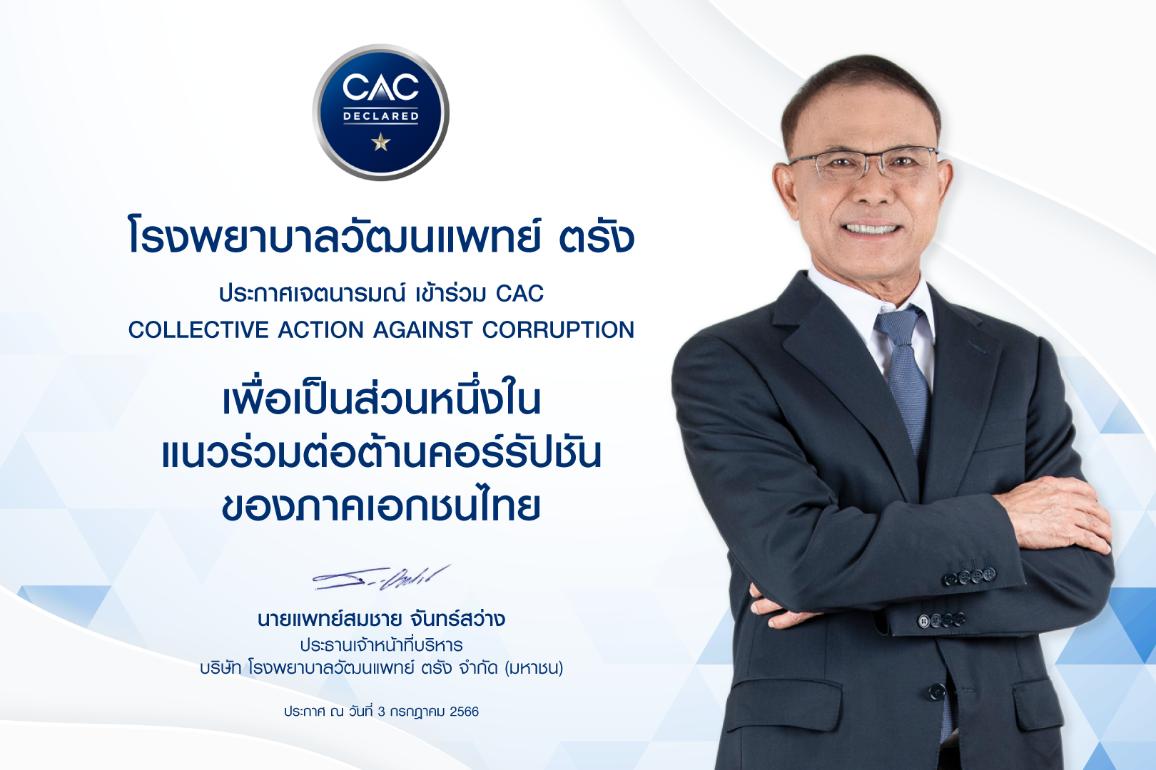 โรงพยาบาลวัฒนแพทย์ ตรัง ประกาศเจตนารมณ์ เข้าร่วม CAC