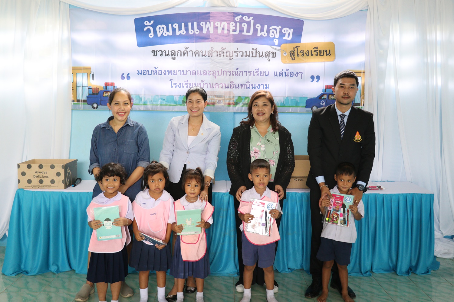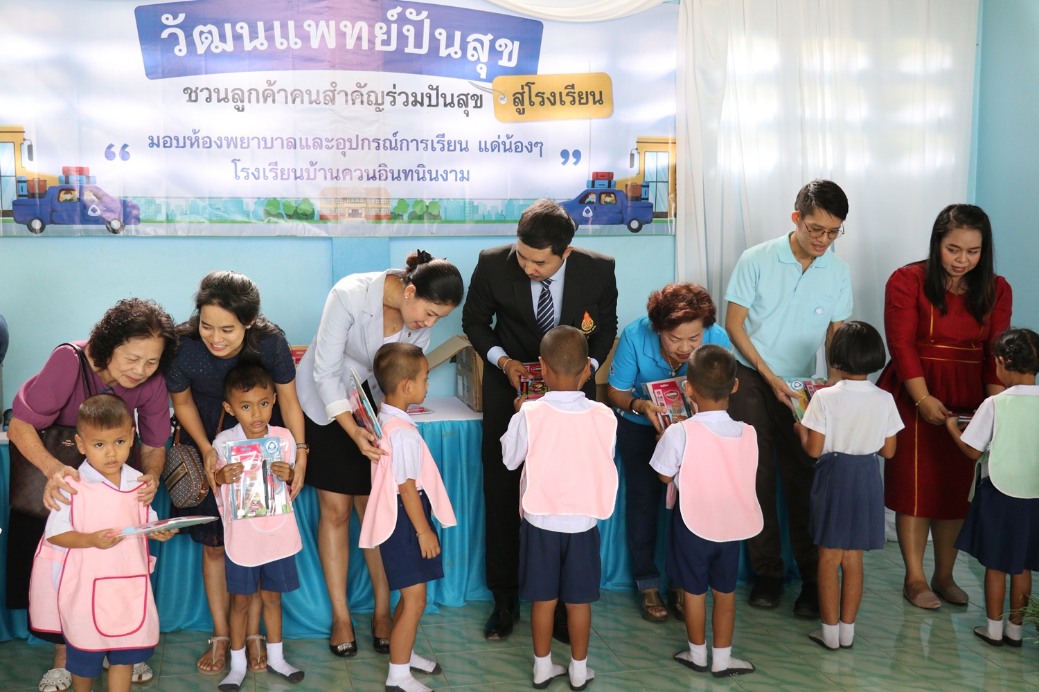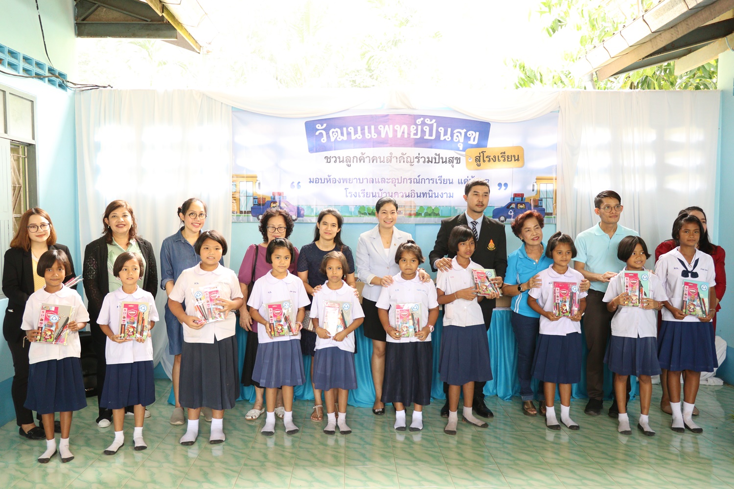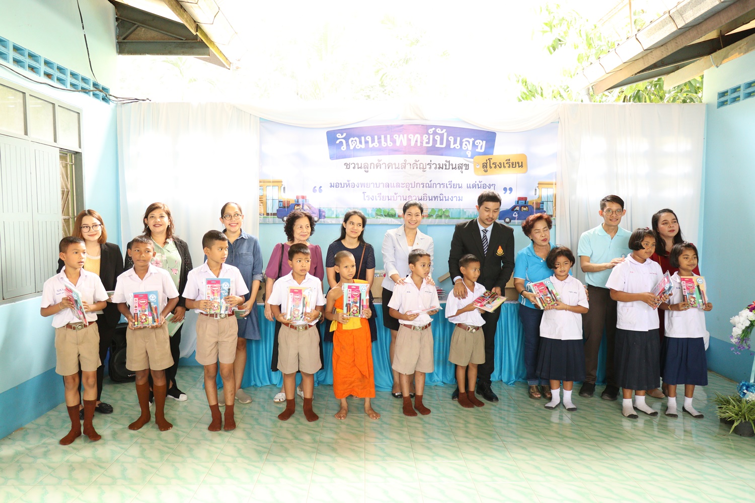 วันที่ 24 กันยายน 2562 โรงพยาบาลวัฒนเเพทย์ ตรัง ร่วมกับลูกค้า Exclusive เเละผู้ใหญ่ใจดี จัดกิจกรรมวัฒนเเพทย์ปันสุขสู่โรงเรียน เพื่อมอบห้องพยาบาล อุปกรณ์ปฐมพยาบาล ตู้ยาพร้อมอุปกรณ์การเรียนที่จำเป็นเเละขนม ให้กับนักเรียนโรงเรียนบ้านควนอินทนินงาม ม.1 ต.ทุ่งกระบือ อ.ย่านตาขาว จ.ตรัง เพื่อเป็นการสร้างคุณภาพชีวิตที่ดีให้เเก่นักเรียน