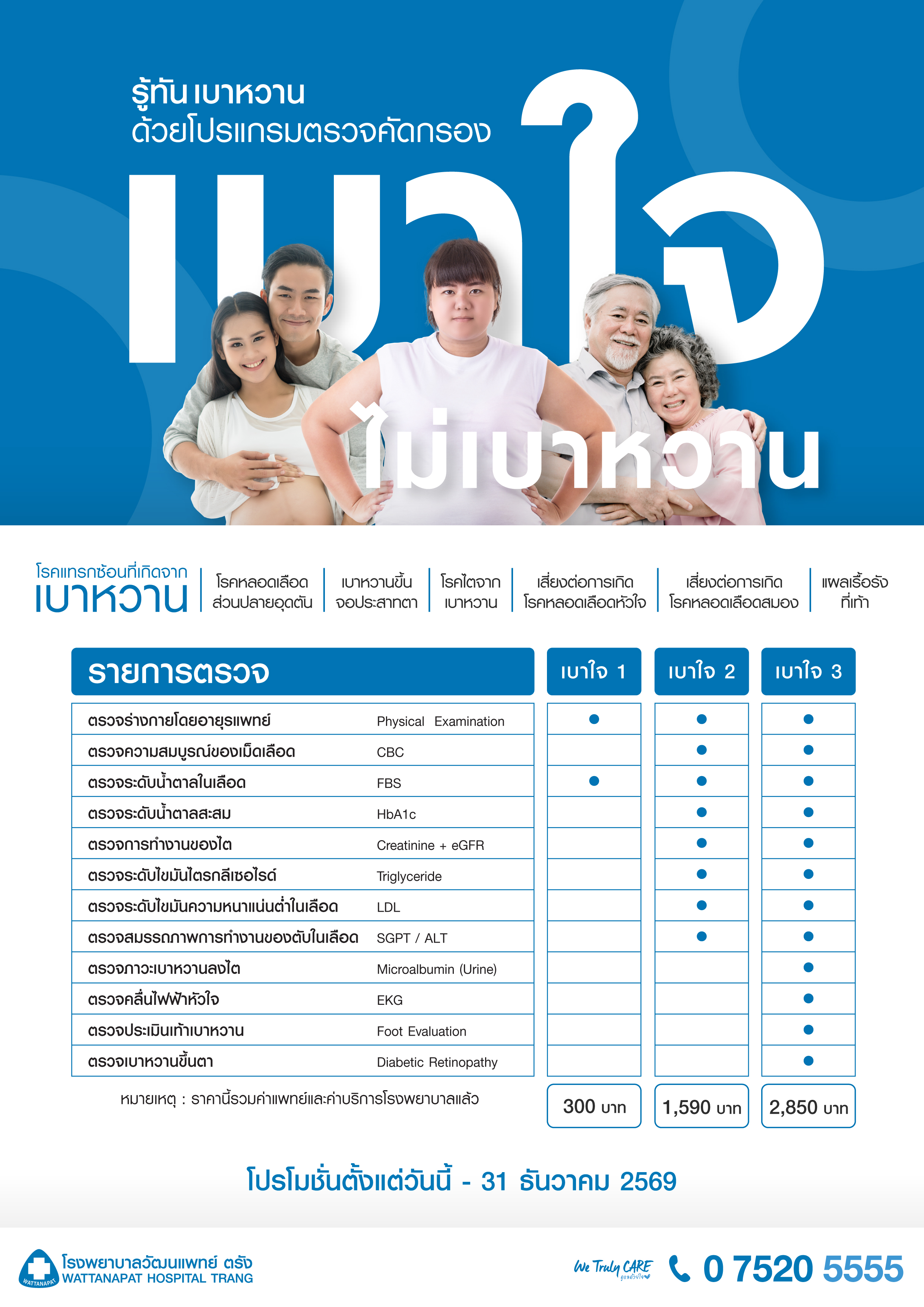 แพ็กเกจตรวจคัดกรองโรคเบาหวาน "เบาใจ ไม่เบาหวาน"