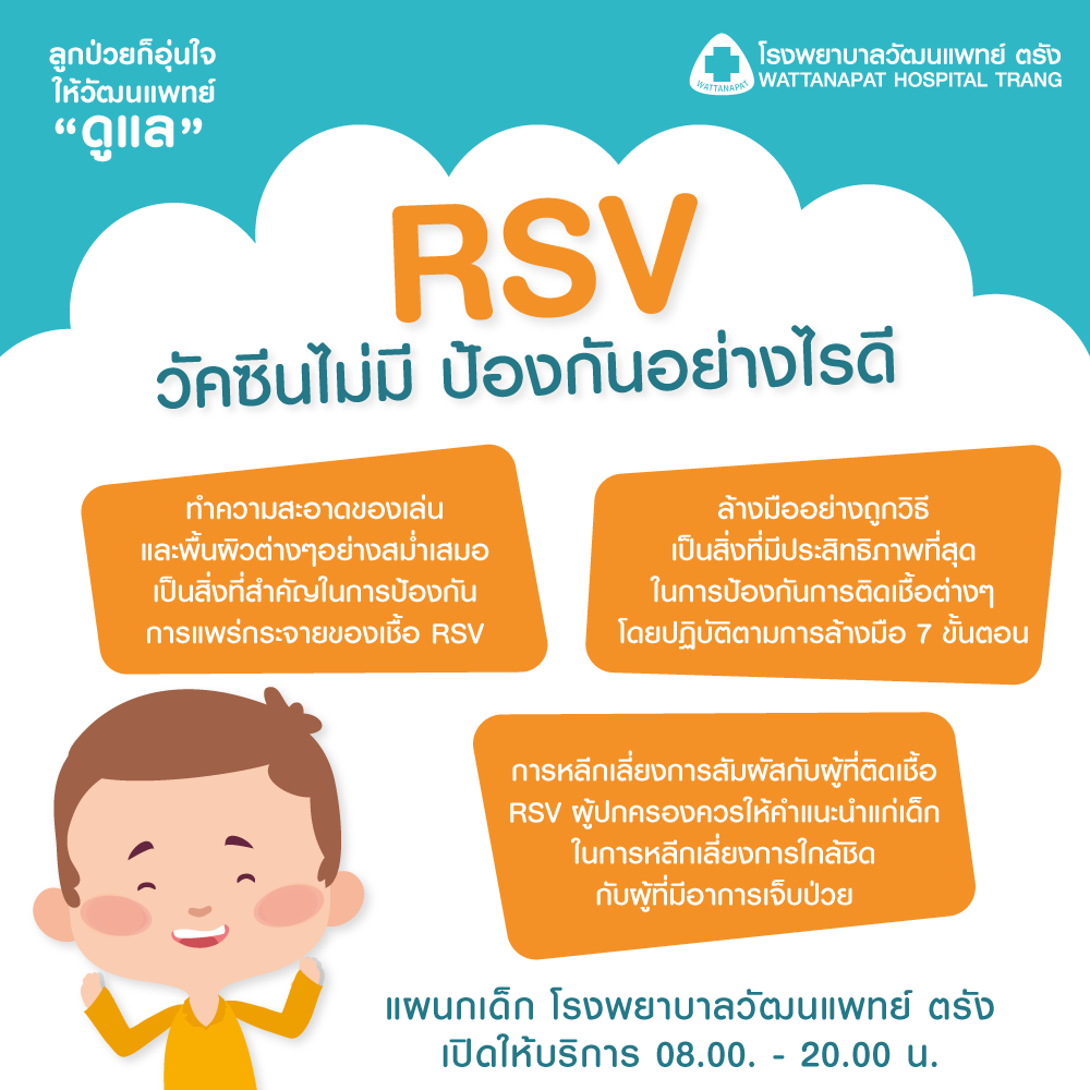 เมื่อเริ่มเข้าช่วงหน้าฝน ก็หลีกเลี่ยงไม่ได้เลยที่อาการป่วยมากมายจะกลับมา ทั้งไข้ ไอ หวัด ไม่สบายตัว และอีกมากมาย โดยเฉพาะเด็กๆ ที่ทำให้เข้าหน้าหนาวทีไร อดไม่ได้ที่พ่อแม่จะแอบหนาวตามไปด้วย โดยโรคหนึ่งที่มากับหน้าฝนนี้เลยก็คือ โรคที่เกิดจากไวรัส RSV วันนี้ แผนกเด็กวัฒนแพทย์จะมาแชร์ข้อมูลของอาการแรกเริ่มของ RSV และการดูแลป้องกันลูกน้อยสำหรับคุณพ่อ คุณแม่กันนะคะ