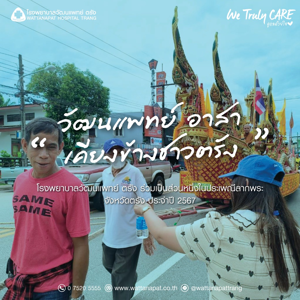 Events Trang Lak-Phra Festival 2024 18 Oct 2024 Read time 1 นาที Share วัฒนแพทย์ อาสาเคียงข้าง "ชาวตรัง" โรงพยาบาลวัฒนแพทย์ ตรัง ร่วมแจกน้ำดื่มแก่ประชาชนในประเพณีลากพระ ประจำจังหวัดตรัง 2567 อัลบั้มภาพกิจกรรม