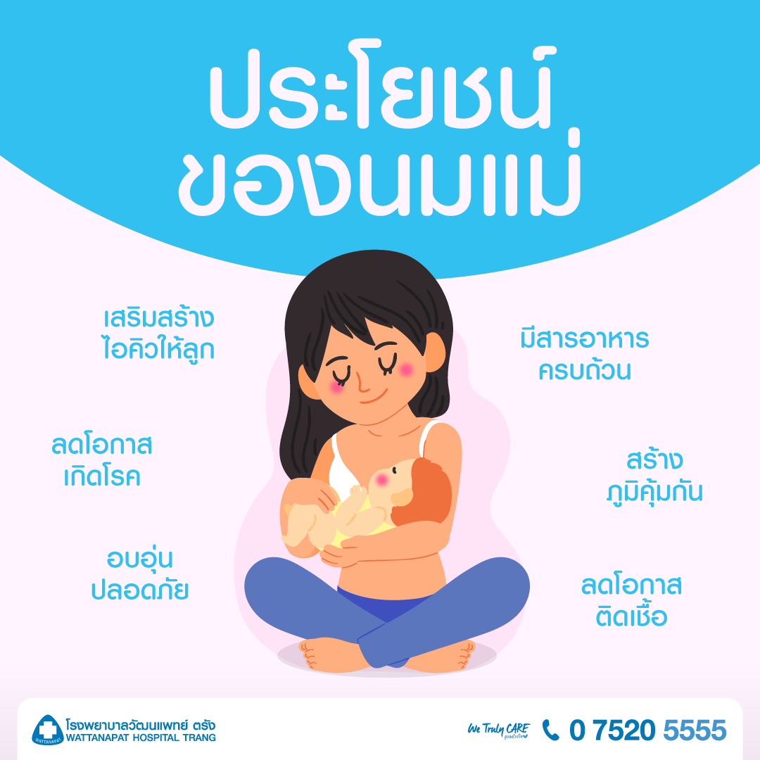 ประโยชน์ของนมแม่นั้นมากมาย เปรียบได้กับวัคซีนหยดแรก ช่วยเสริมสร้างภูมิต้านทานโรค ลดความเสี่ยงการติดเชื้อ ช่วยให้ลูกฟื้นตัวเร็วหากเจ็บป่วย มีงานวิจัยที่ชี้ให้เห็นถึงความสัมพันธ์ระหว่างนมแม่กับการเพิ่มของไอคิวลูกน้อย อีกทั้งยังสร้างความรู้สึกผูกพันและปลอดภัยให้แก่ลูกน้อย