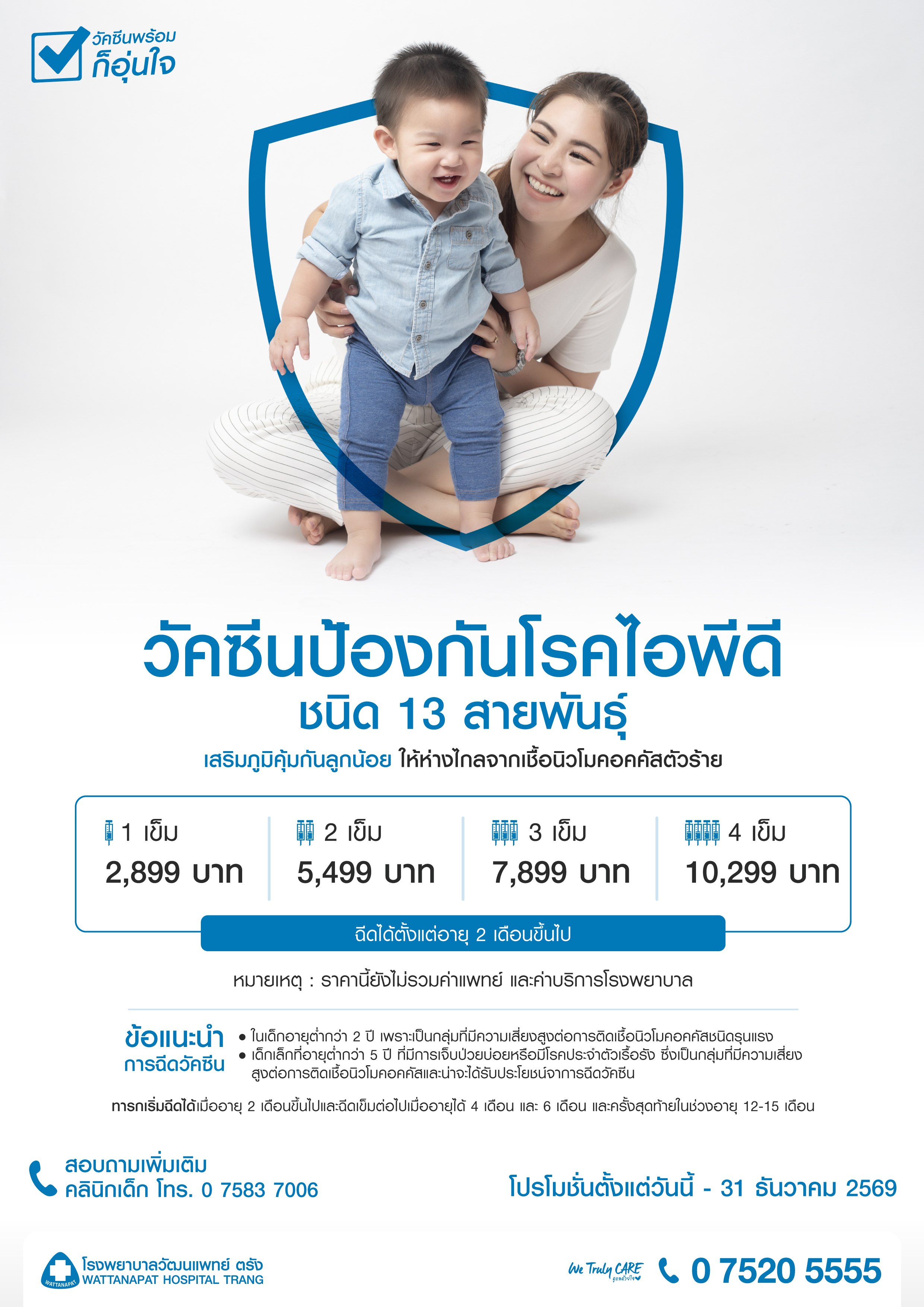 วัคซีนป้องกันโรคไอพีดี (IPD) ชนิด 13 สายพันธุ์ 2 เข็ม
