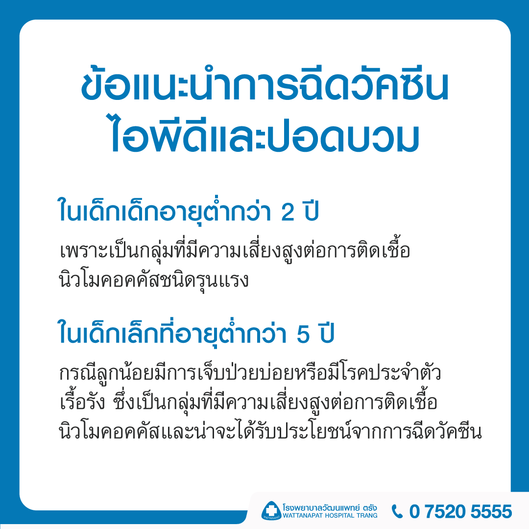 • ในเด็กอายุต่ำกว่า 2 ปี เพราะเป็นกลุ่มที่มีความเสี่ยงสูงต่อการติดเชื้อนิวโมคอคคัสชนิดรุนแรง
