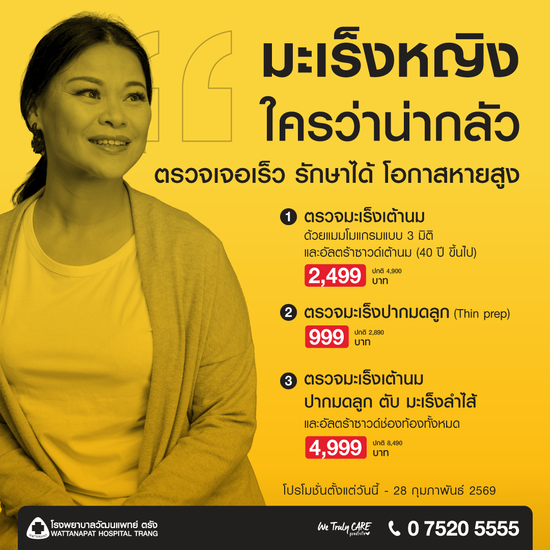 ตรวจคัดกรองมะเร็งปากมดลูก (Pap Test / HPV DNA): อย่างน้อยปีละ 1 ครั้ง หรือตามที่แพทย์แนะนำ