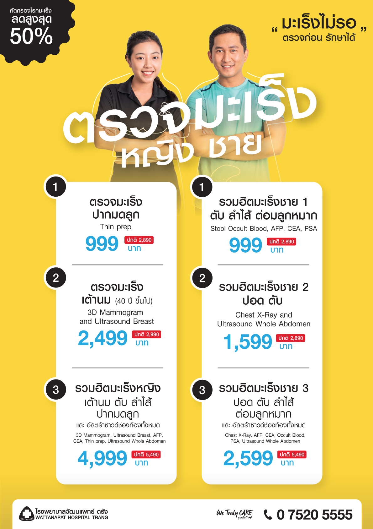 มะเร็งไม่รอ ตรวจก่อน รักษาได้ ที่ โรงพยาบาลวัฒนแพทย์ ตรัง