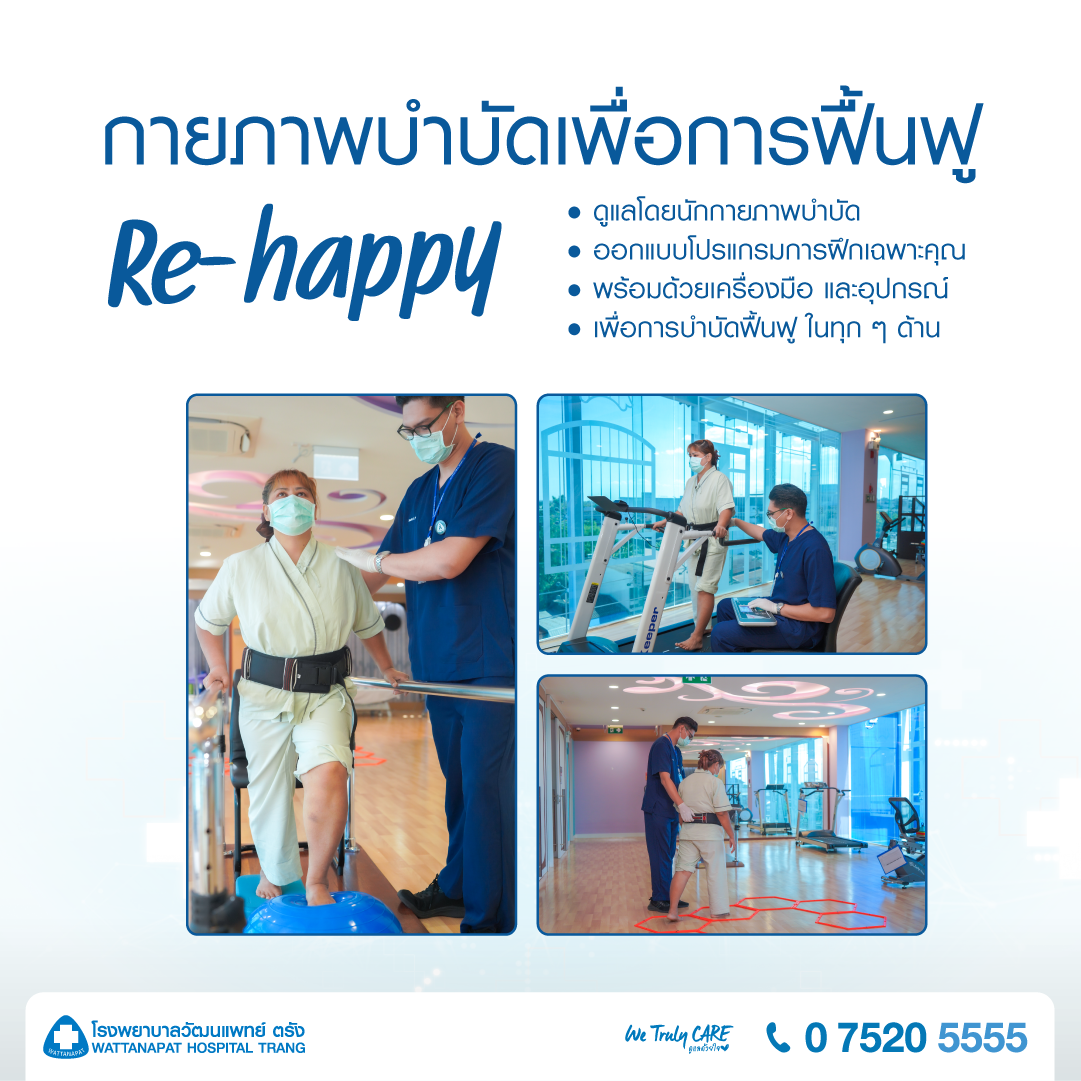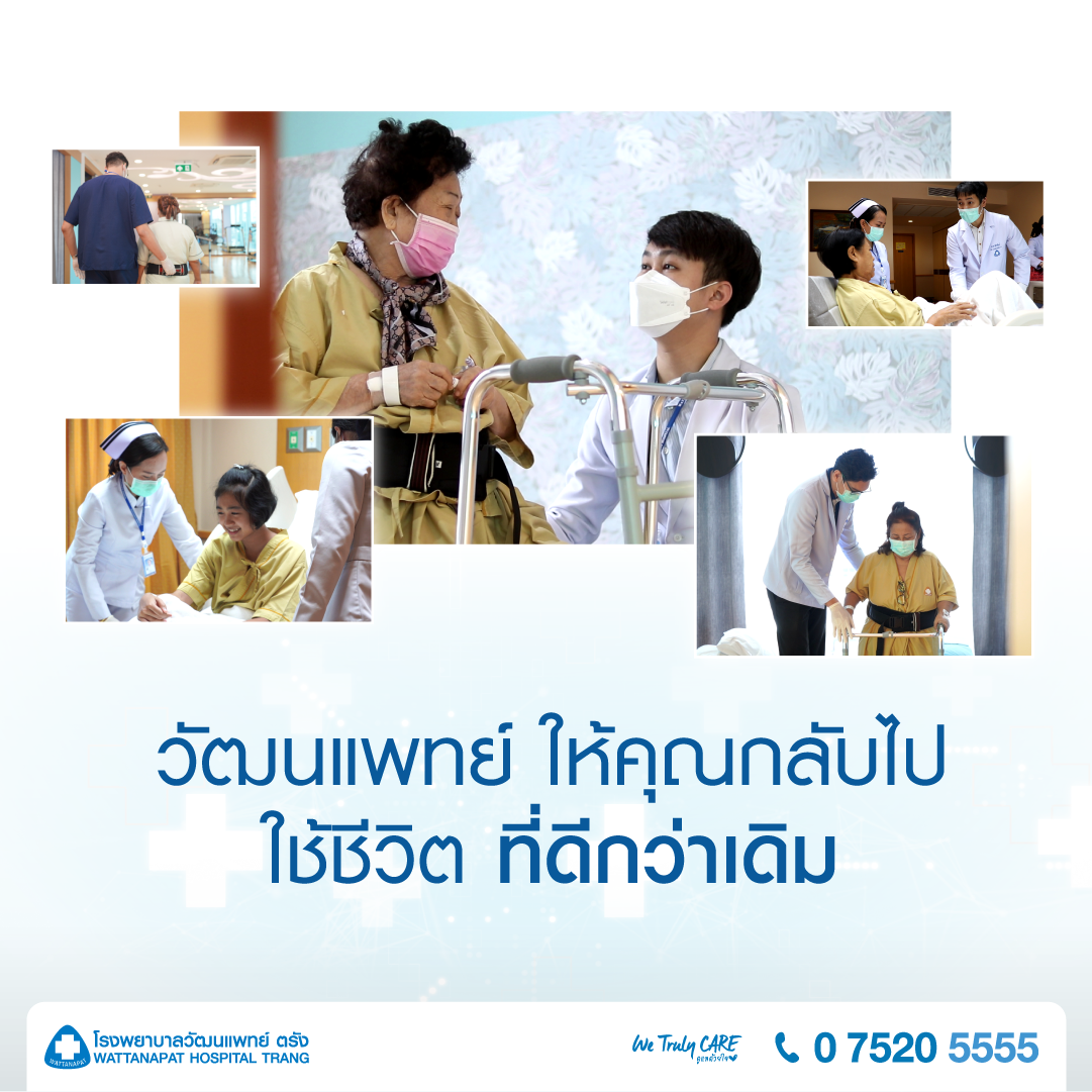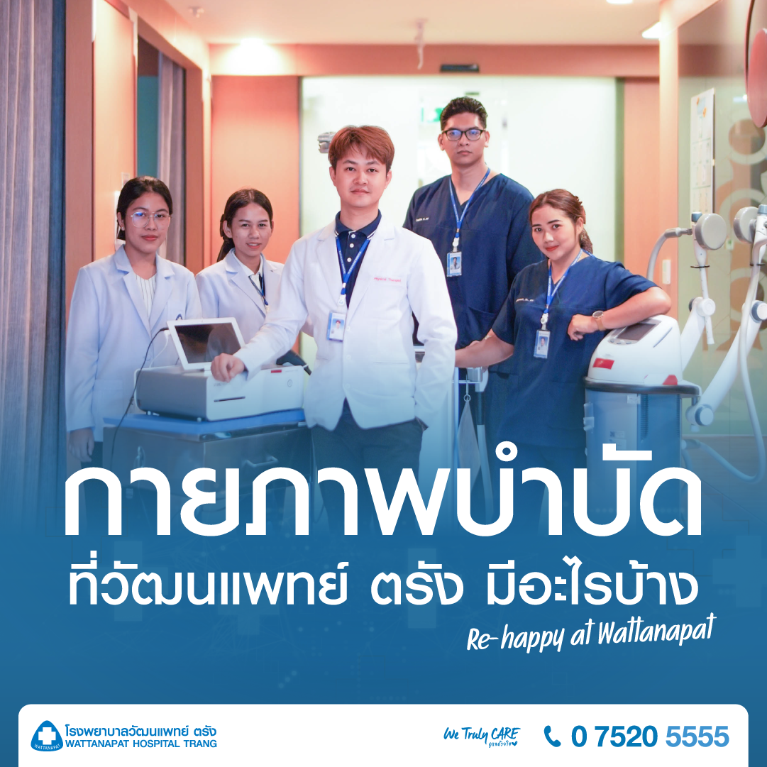 แผนกกายภาพบำบัด โรงพยาบาลวัฒนแพทย์ ตรัง ให้บริการปรึกษาและฟื้นฟูสมรรถภาพสำหรับผู้ป่วยที่มีภาวะร่างกายเสื่อมสมรรถภาพจากอุบัติเหตุหรือการเจ็บป่วยเรื้อรัง โดยนักกายภาพบำบัดวิชาชีพที่มีประสบการณ์ ดูแลท่านให้บรรเทาจากอาการเจ็บปวด และช่วยให้ผู้ป่วยกลับไปใช้ชีวิตได้ตามปกติ
