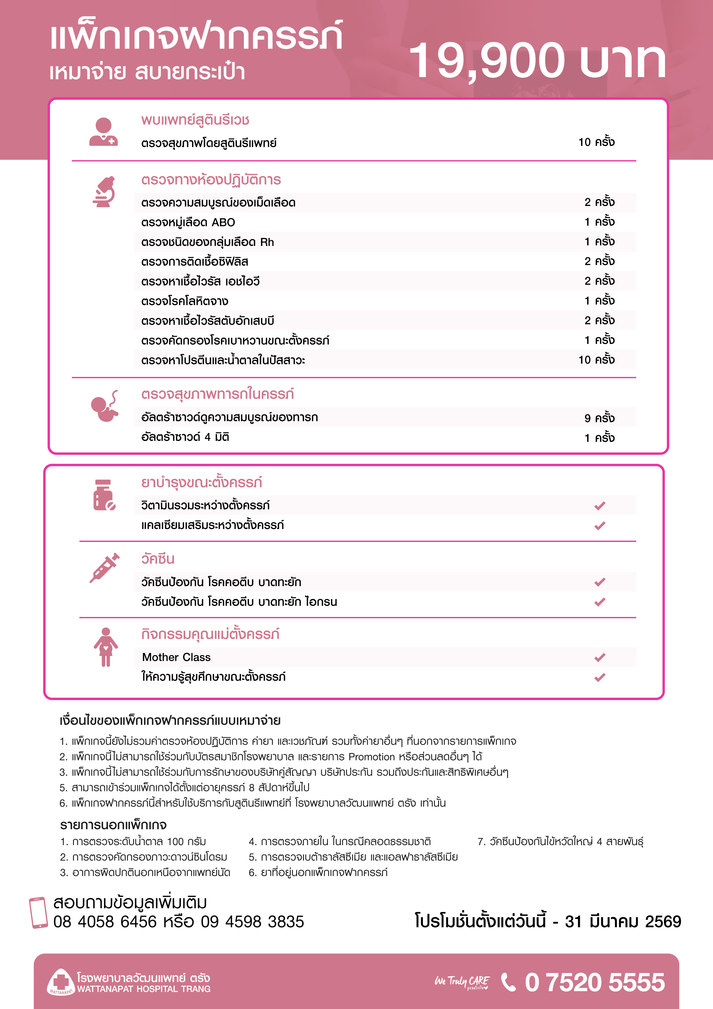 แพ็กเกจฝากครรภ์เหมาจ่าย ราคา 19,900 บาท