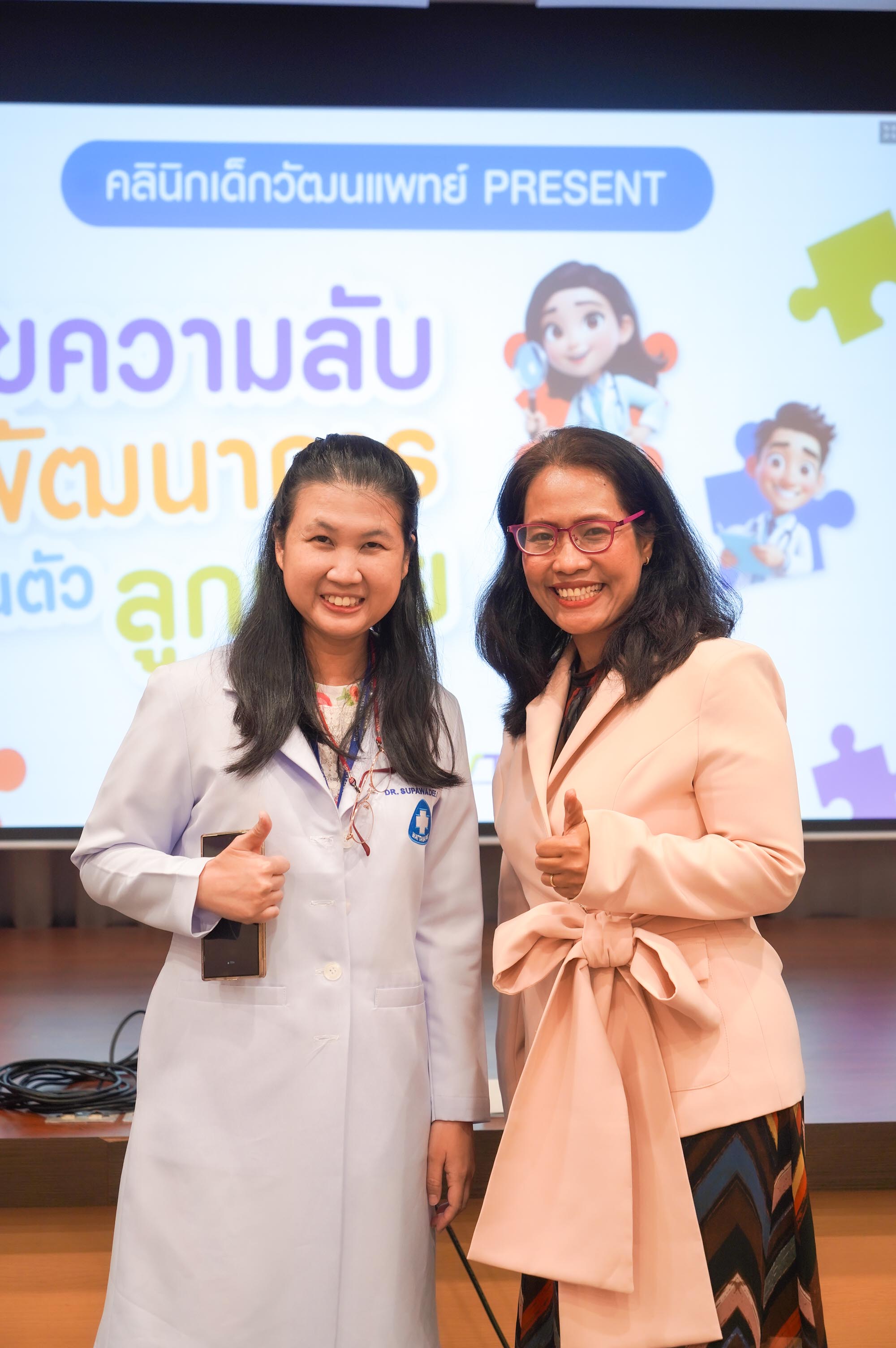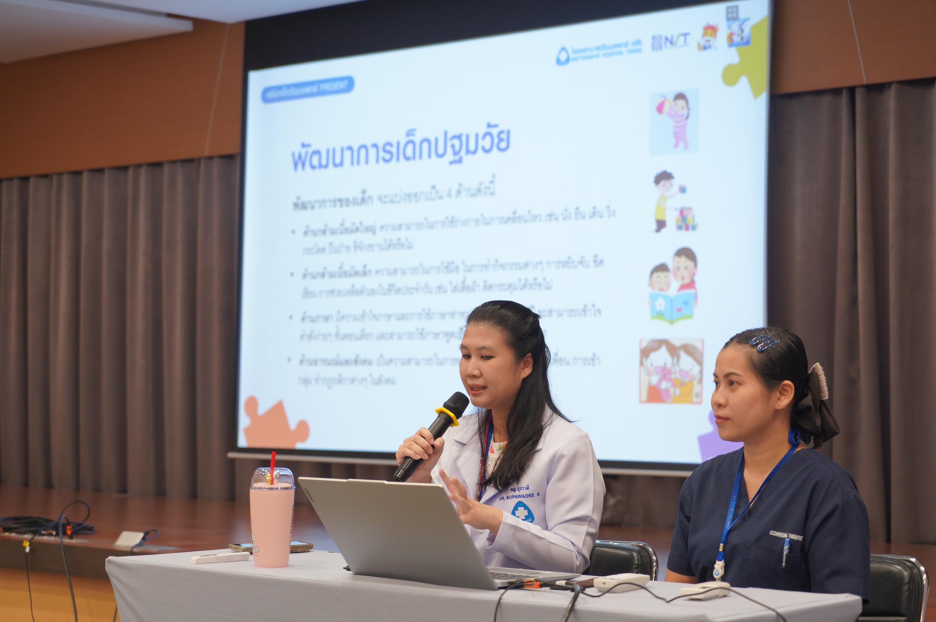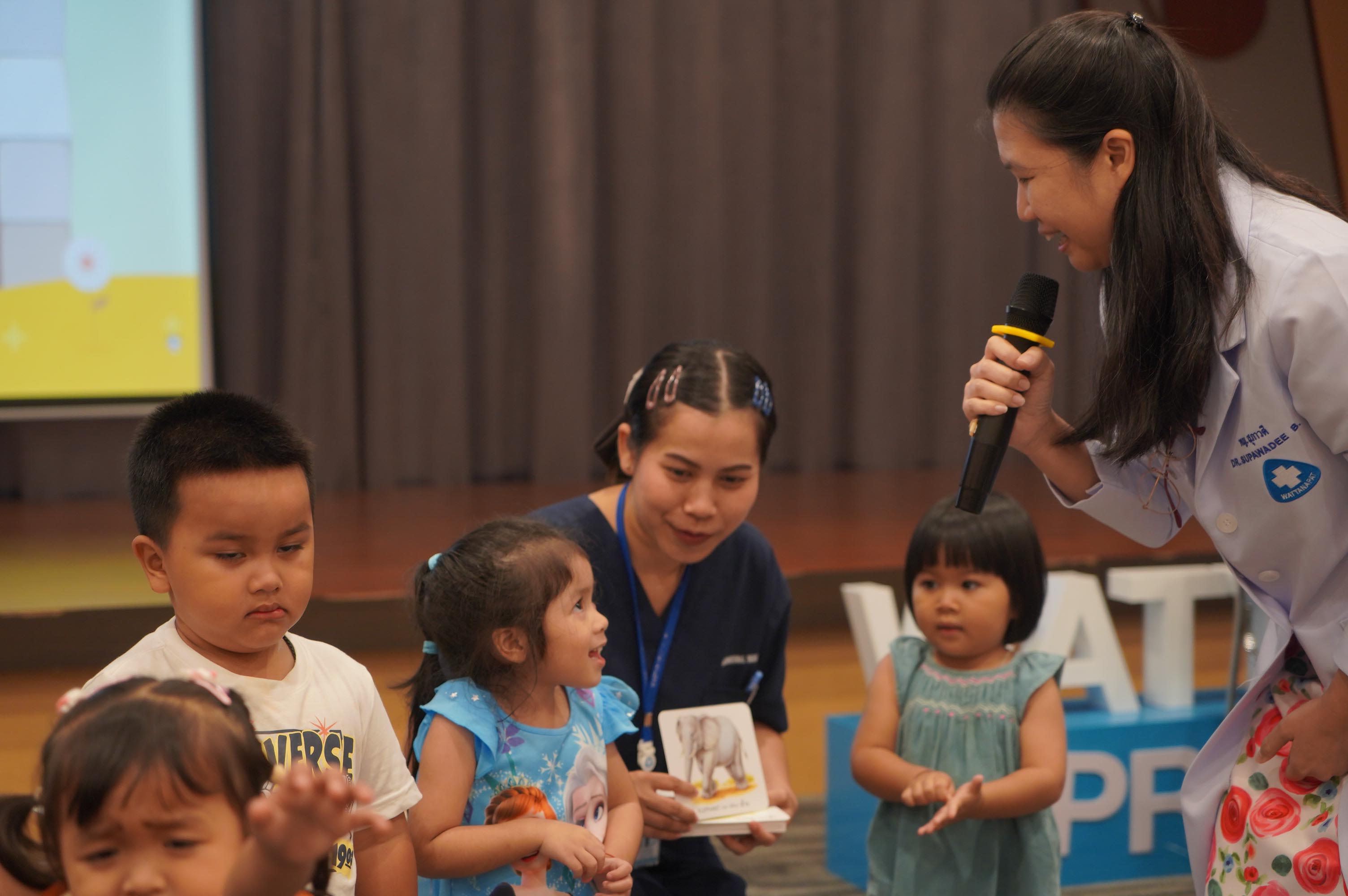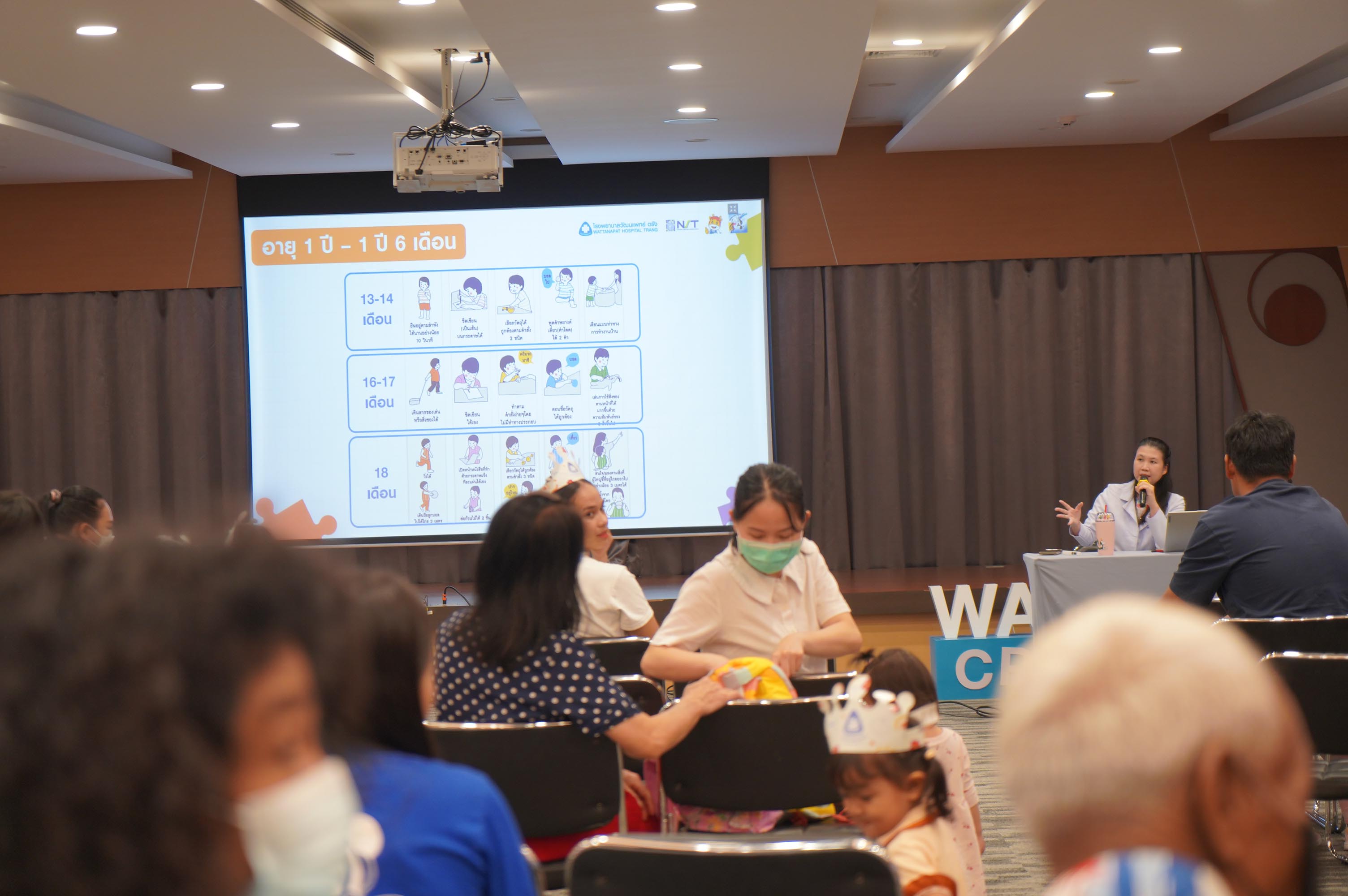 ภายในงาน ผู้ปกครองได้รับเกียรติพบกับ “หมอหยก” กุมารแพทย์เฉพาะทาง และ “พี่กระแต” นักกิจกรรมบำบัด ที่มาร่วมถ่ายทอดความรู้เรื่องพัฒนาการเด็กผ่านภาษาที่เข้าใจง่าย พร้อมกิจกรรมเวิร์กช็อปเชิงปฏิบัติที่ช่วยให้ผู้ปกครองได้เรียนรู้วิธีส่งเสริมศักยภาพลูกน้อยอย่างถูกต้องเหมาะสมตามวัย