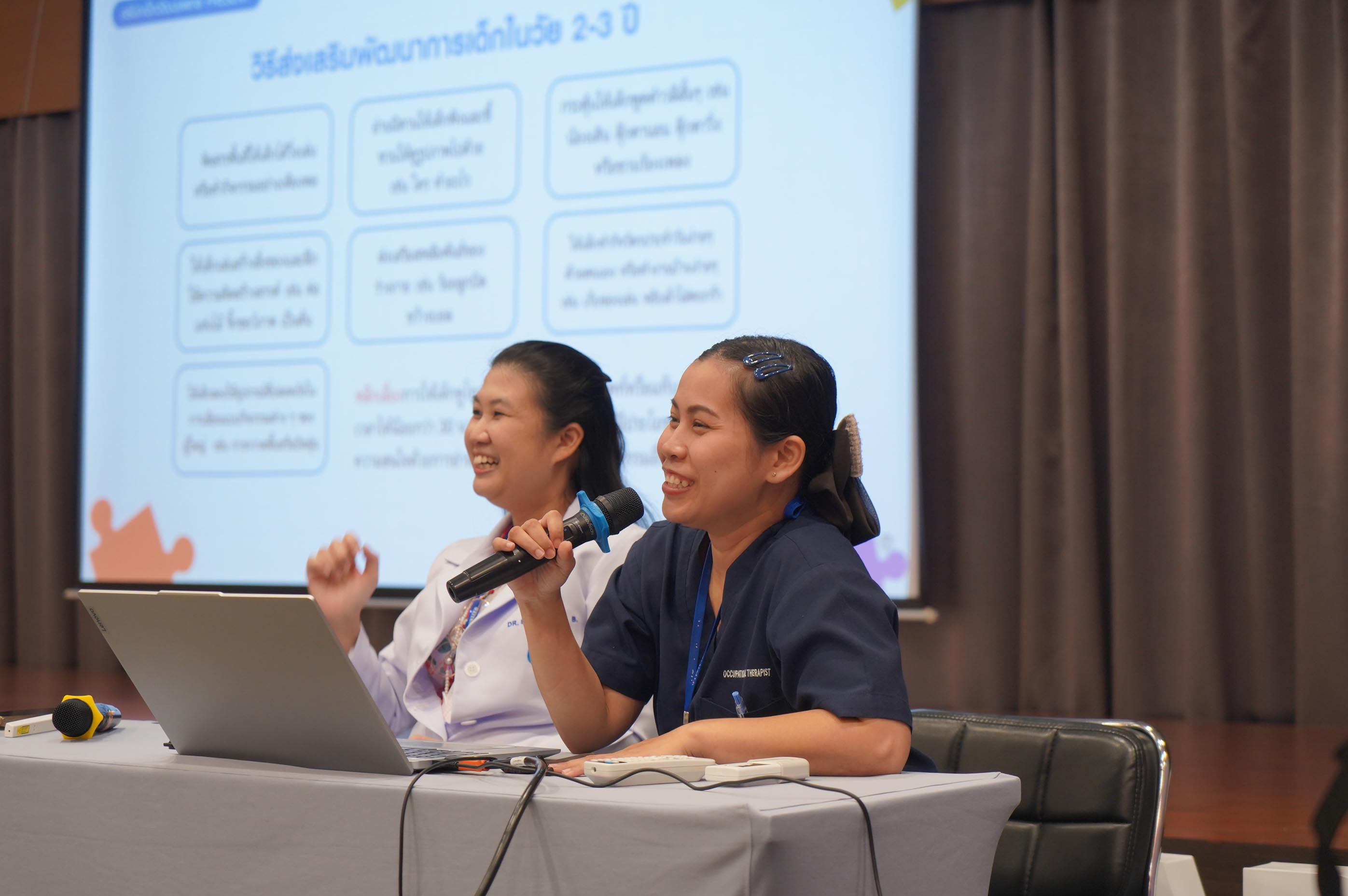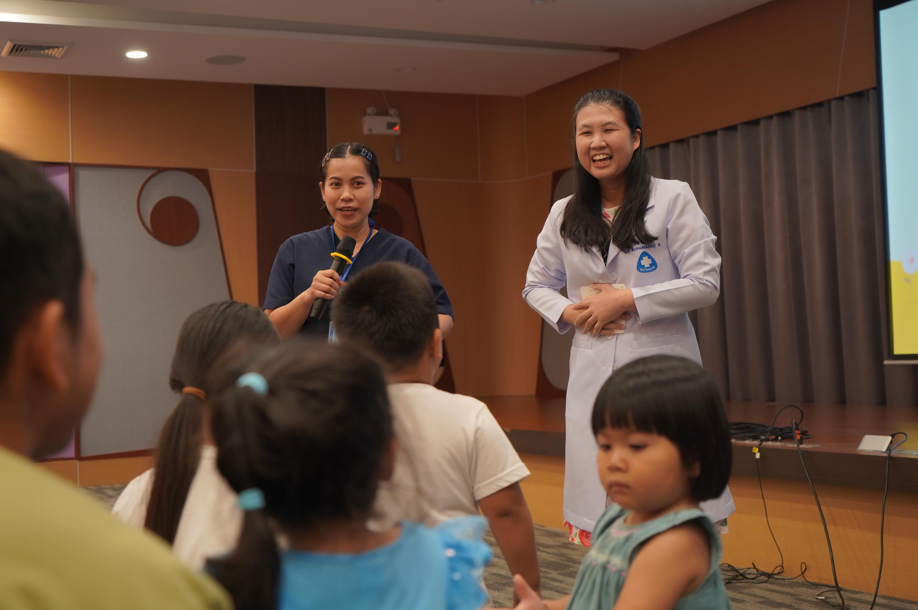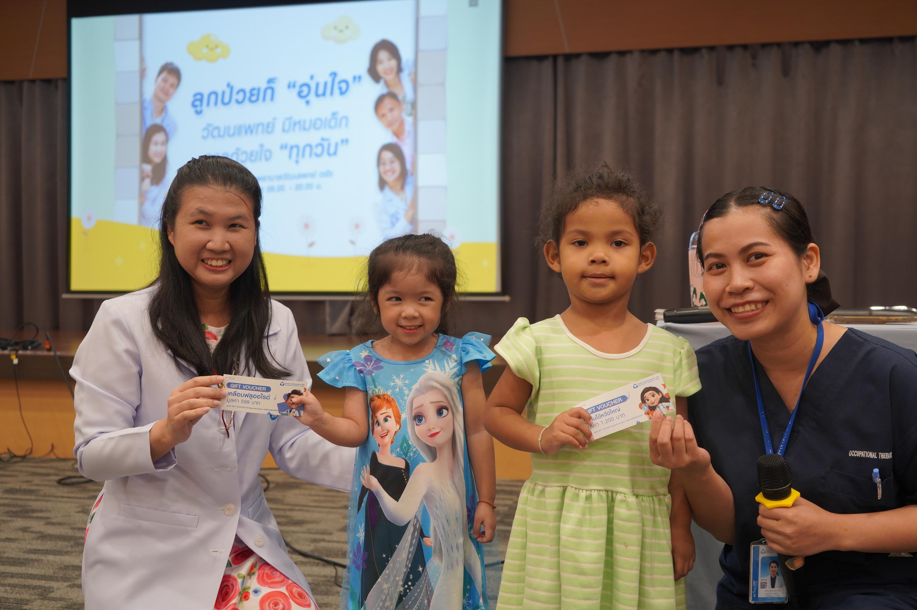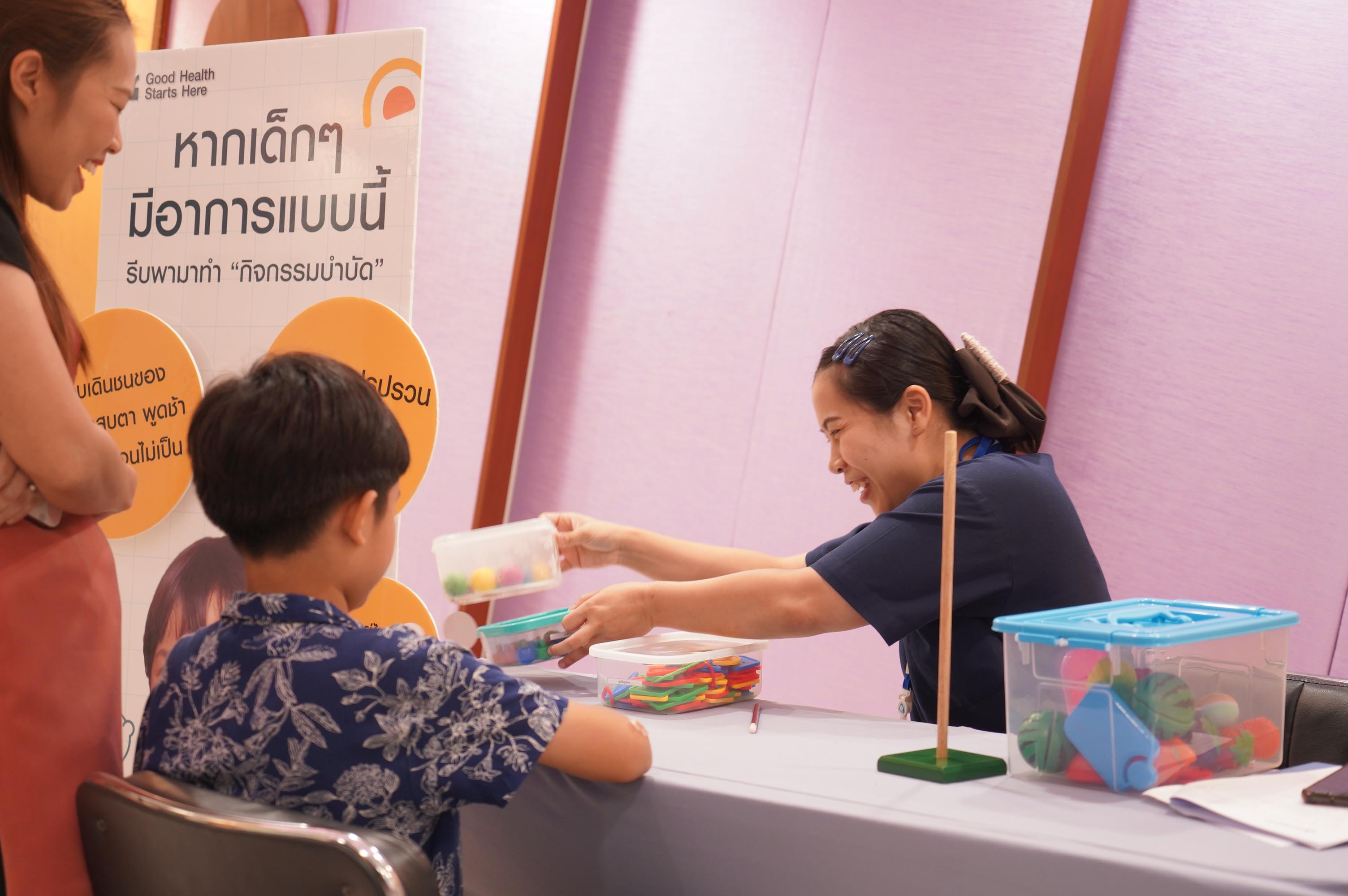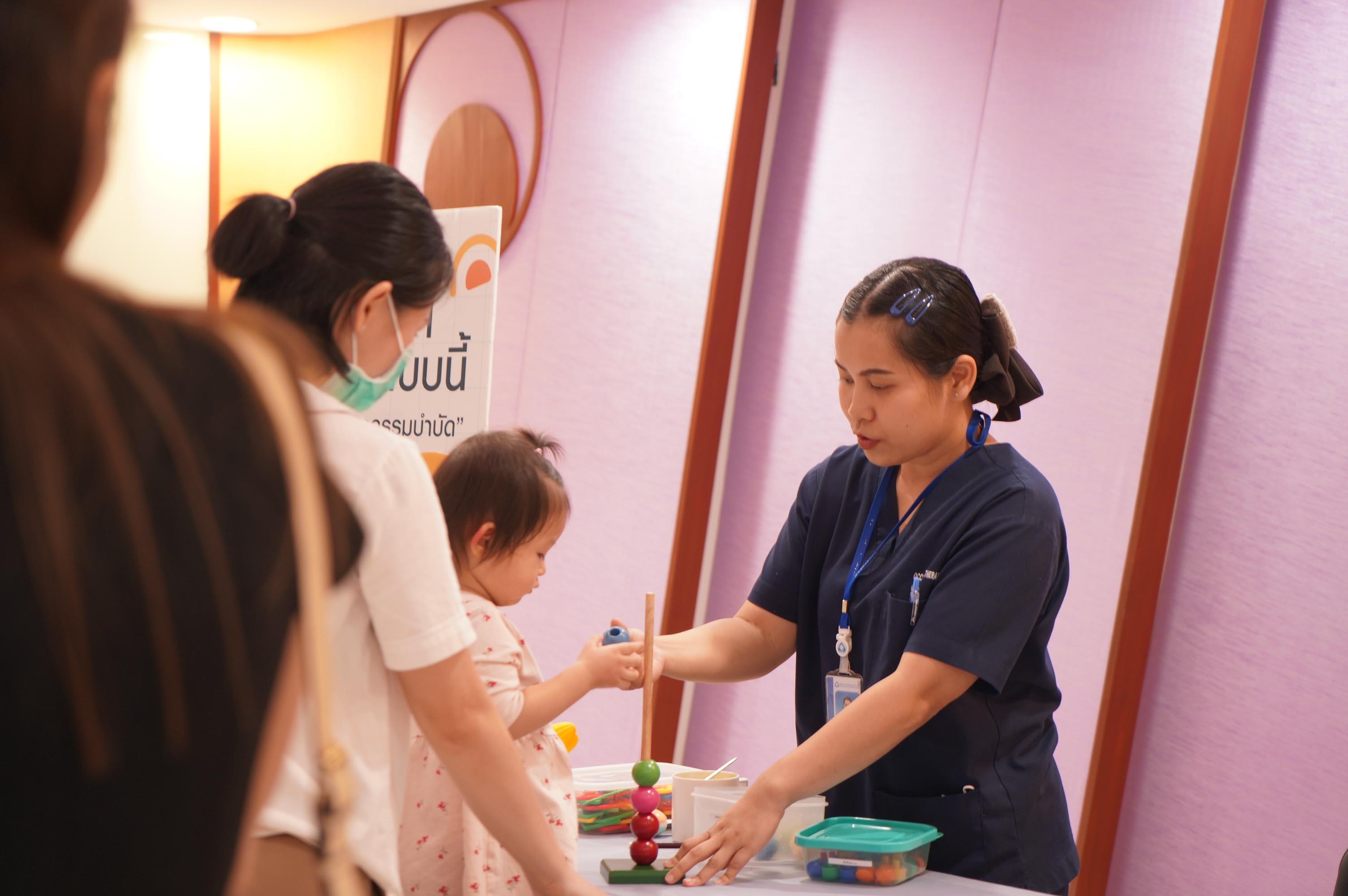 ภายในงาน ผู้ปกครองได้รับเกียรติพบกับ “หมอหยก” กุมารแพทย์เฉพาะทาง และ “พี่กระแต” นักกิจกรรมบำบัด ที่มาร่วมถ่ายทอดความรู้เรื่องพัฒนาการเด็กผ่านภาษาที่เข้าใจง่าย พร้อมกิจกรรมเวิร์กช็อปเชิงปฏิบัติที่ช่วยให้ผู้ปกครองได้เรียนรู้วิธีส่งเสริมศักยภาพลูกน้อยอย่างถูกต้องเหมาะสมตามวัย