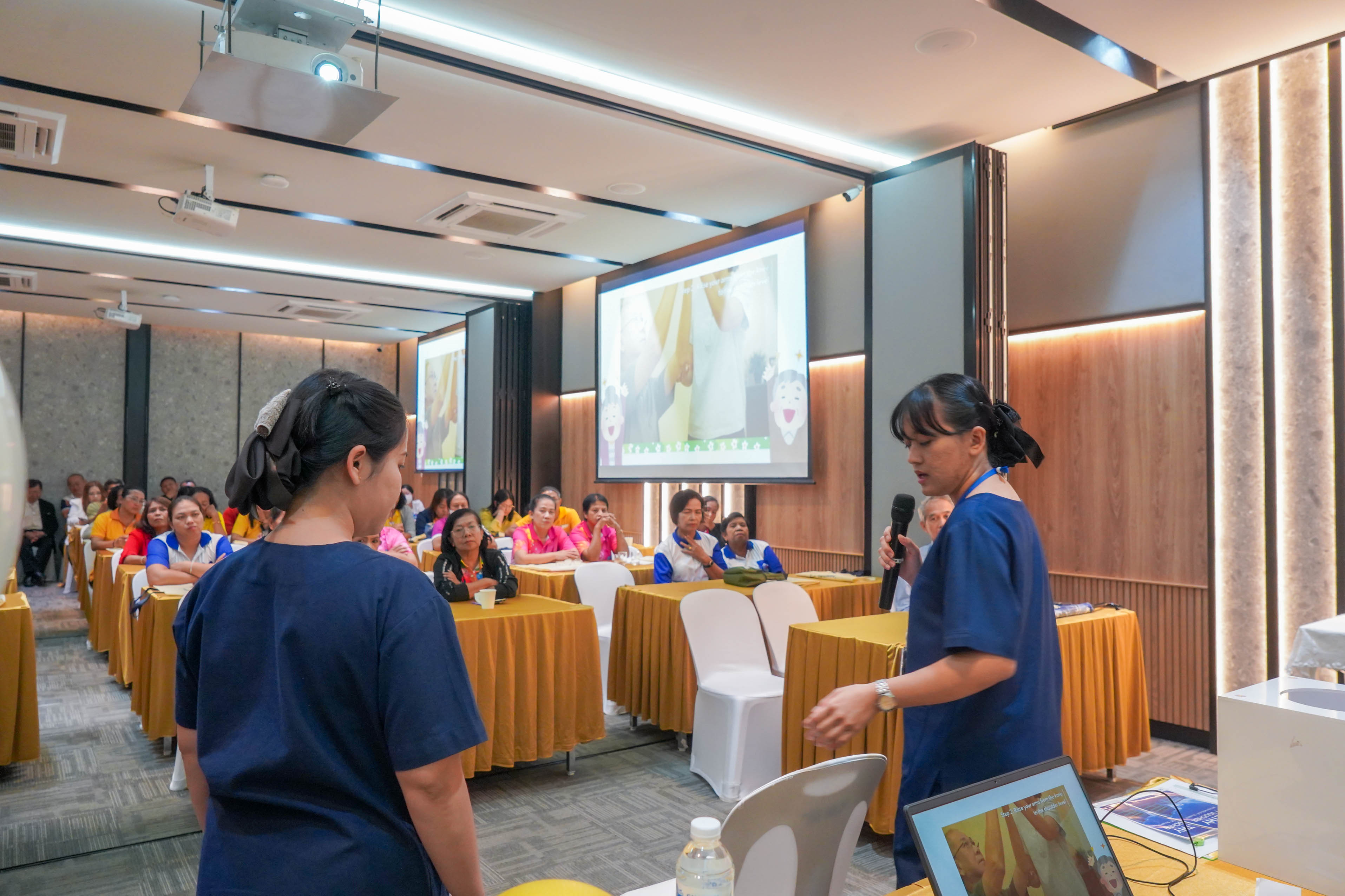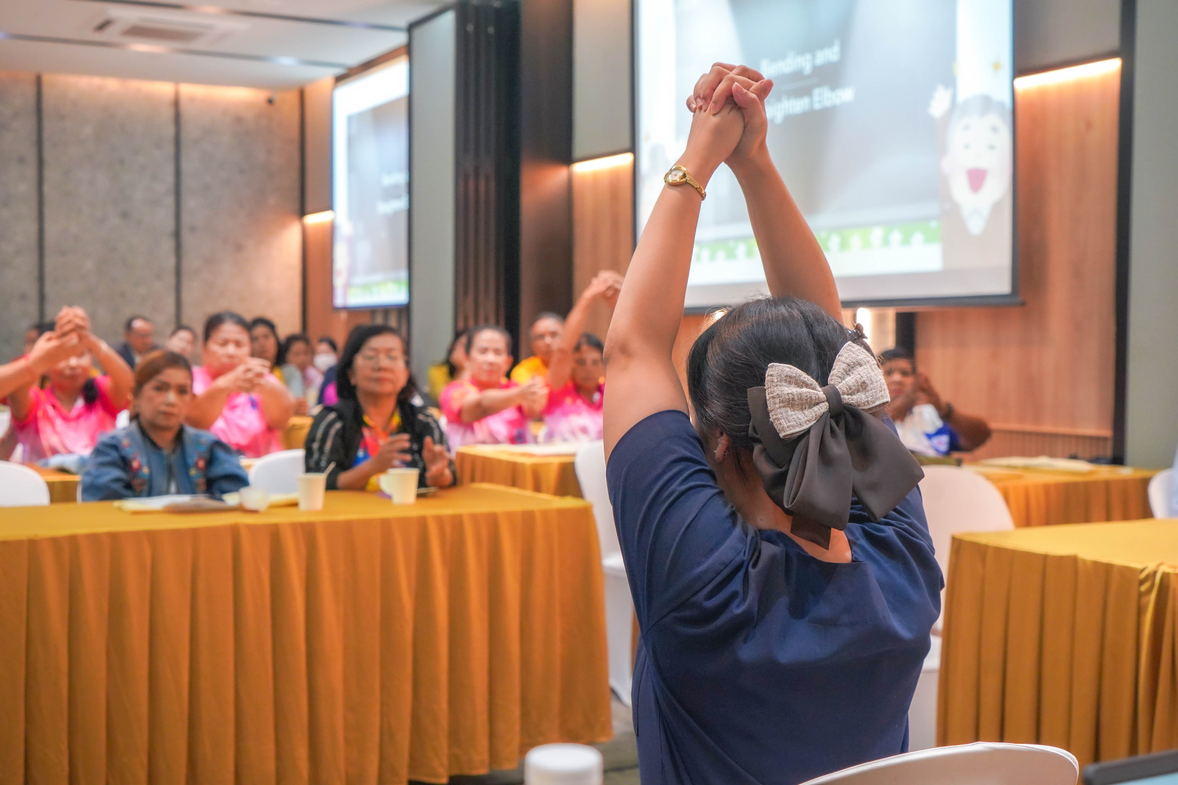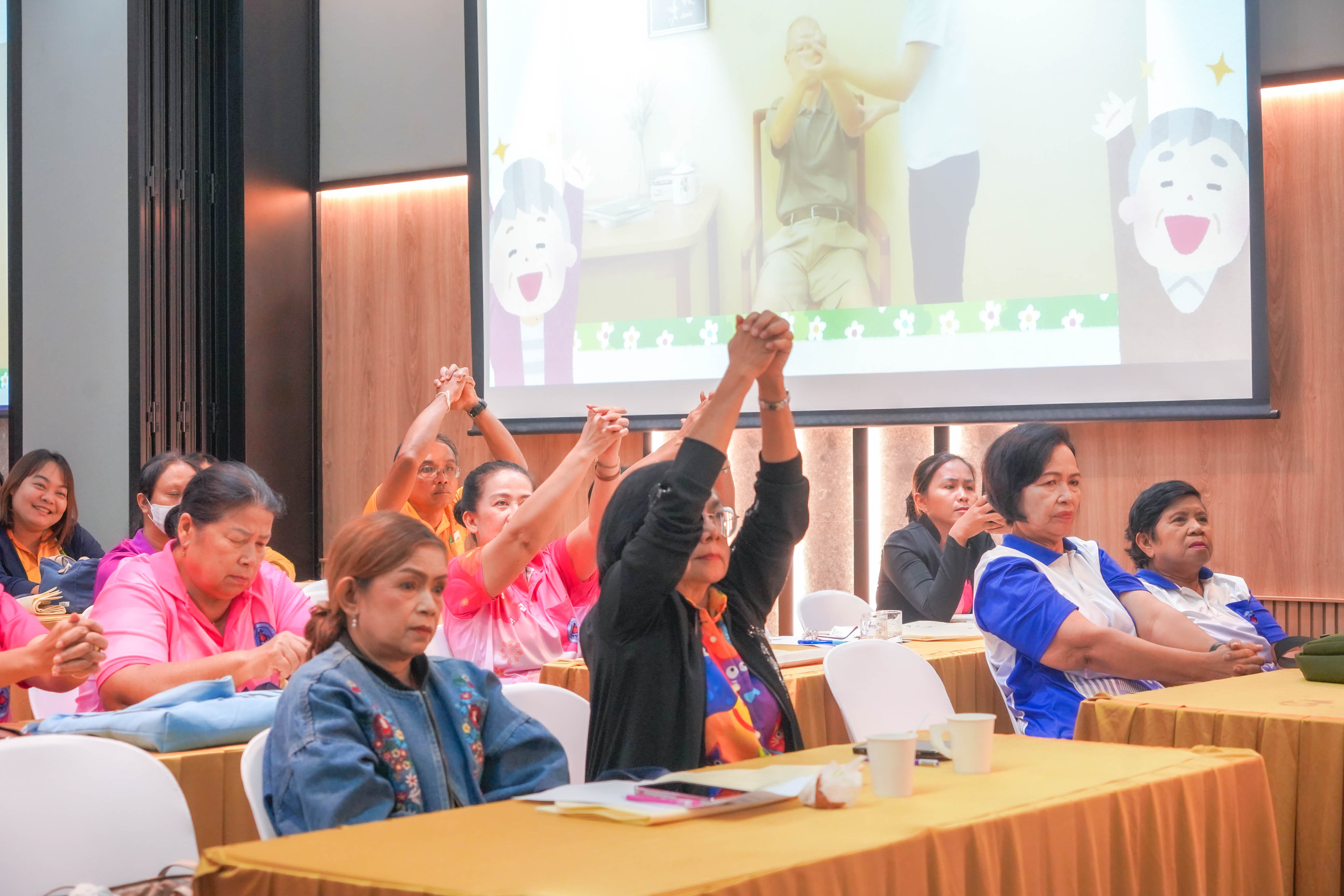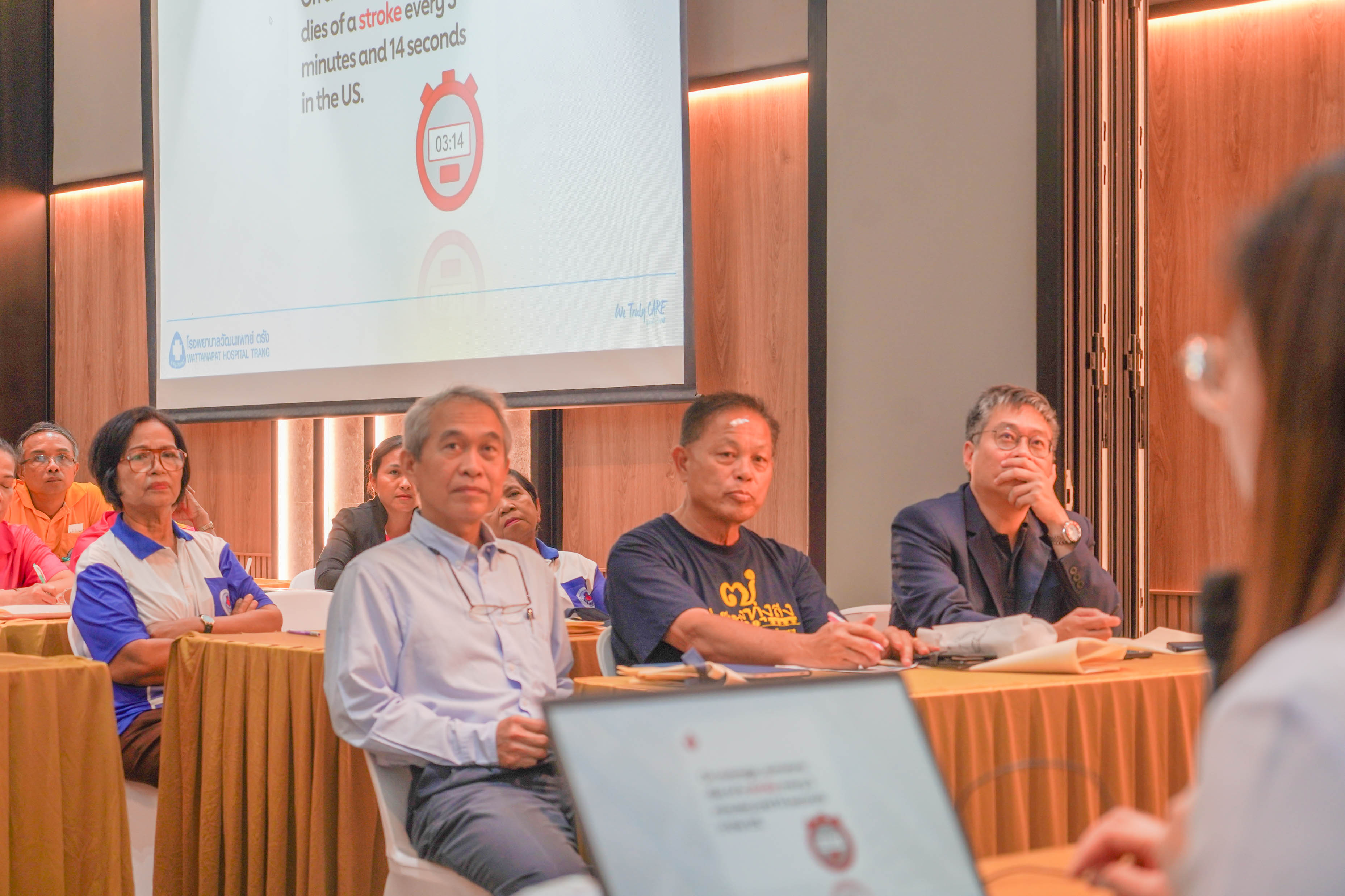 นอกจากการบรรยายให้ความรู้แล้ว ผู้เข้าร่วมยังได้ร่วมกิจกรรม Workshop ฝึกท่าทางกายภาพบำบัด กับทีมผู้เชี่ยวชาญ เพื่อเรียนรู้วิธีช่วยเหลือตัวเองและดูแลผู้ป่วยโรคหลอดเลือดสมองได้อย่างถูกต้อง