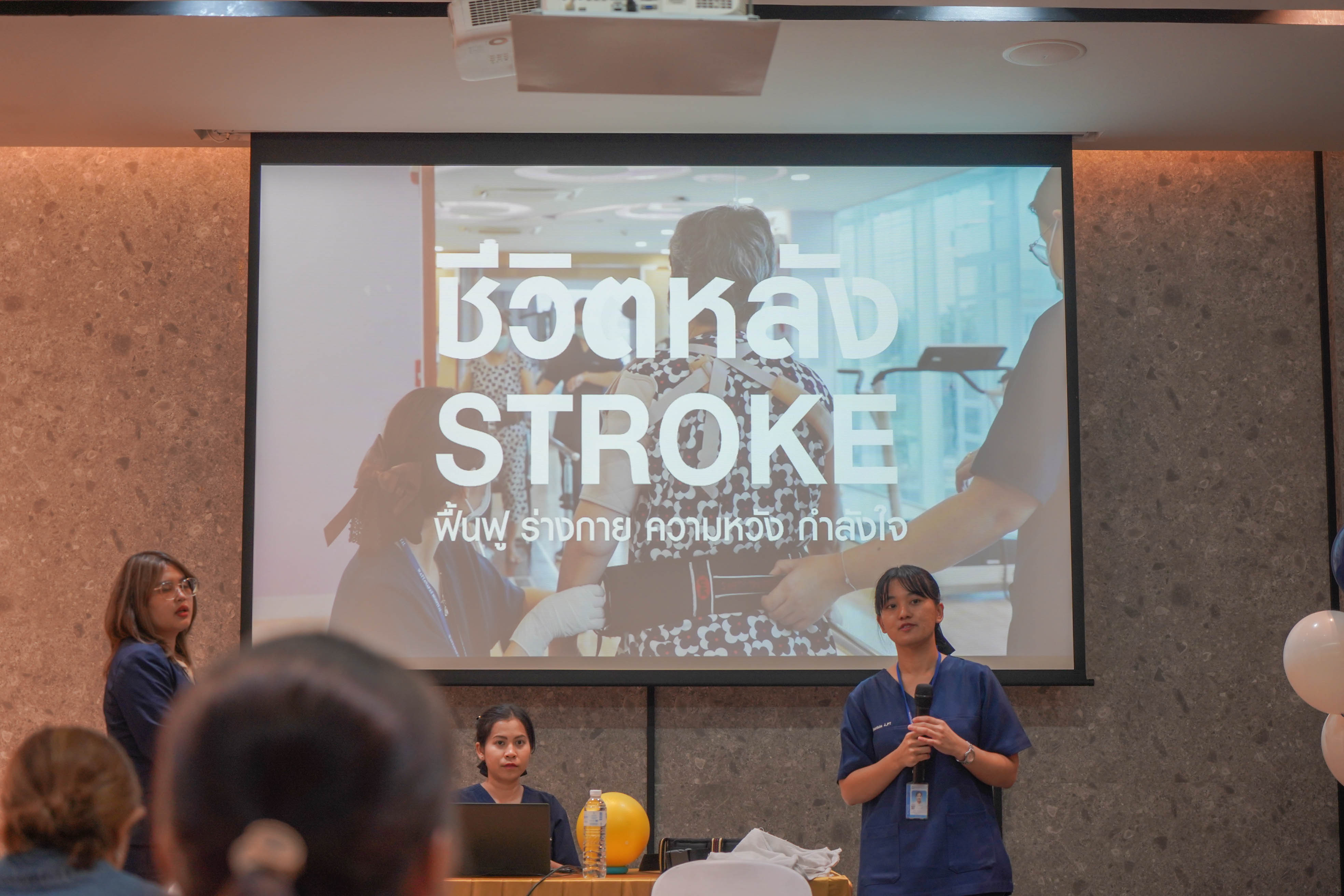 ภายในงาน พญ.ดารารัตน์ สุขษาสุณี แพทย์เฉพาะทางระบบประสาทและสมอง ได้ให้ความรู้เกี่ยวกับ อาการ สาเหตุ ปัจจัยเสี่ยง และวิธีป้องกันโรคหลอดเลือดสมอง พร้อมเน้นย้ำถึงความสำคัญของการสังเกตสัญญาณเตือนและเข้ารับการรักษาอย่างทันท่วงที เพื่อเพิ่มโอกาสฟื้นตัวและลดภาวะแทรกซ้อน