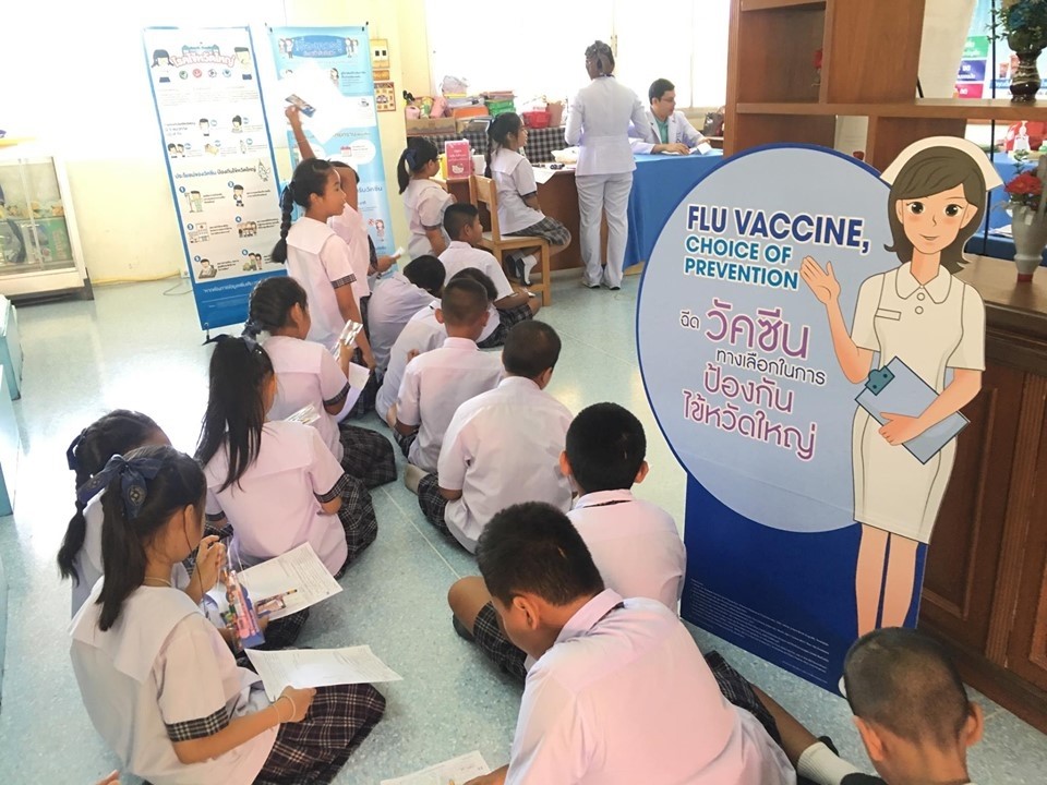 ภาพบรรยากาศการให้ความรู้เรื่องวัคซีนไข้หวัดใหญ่