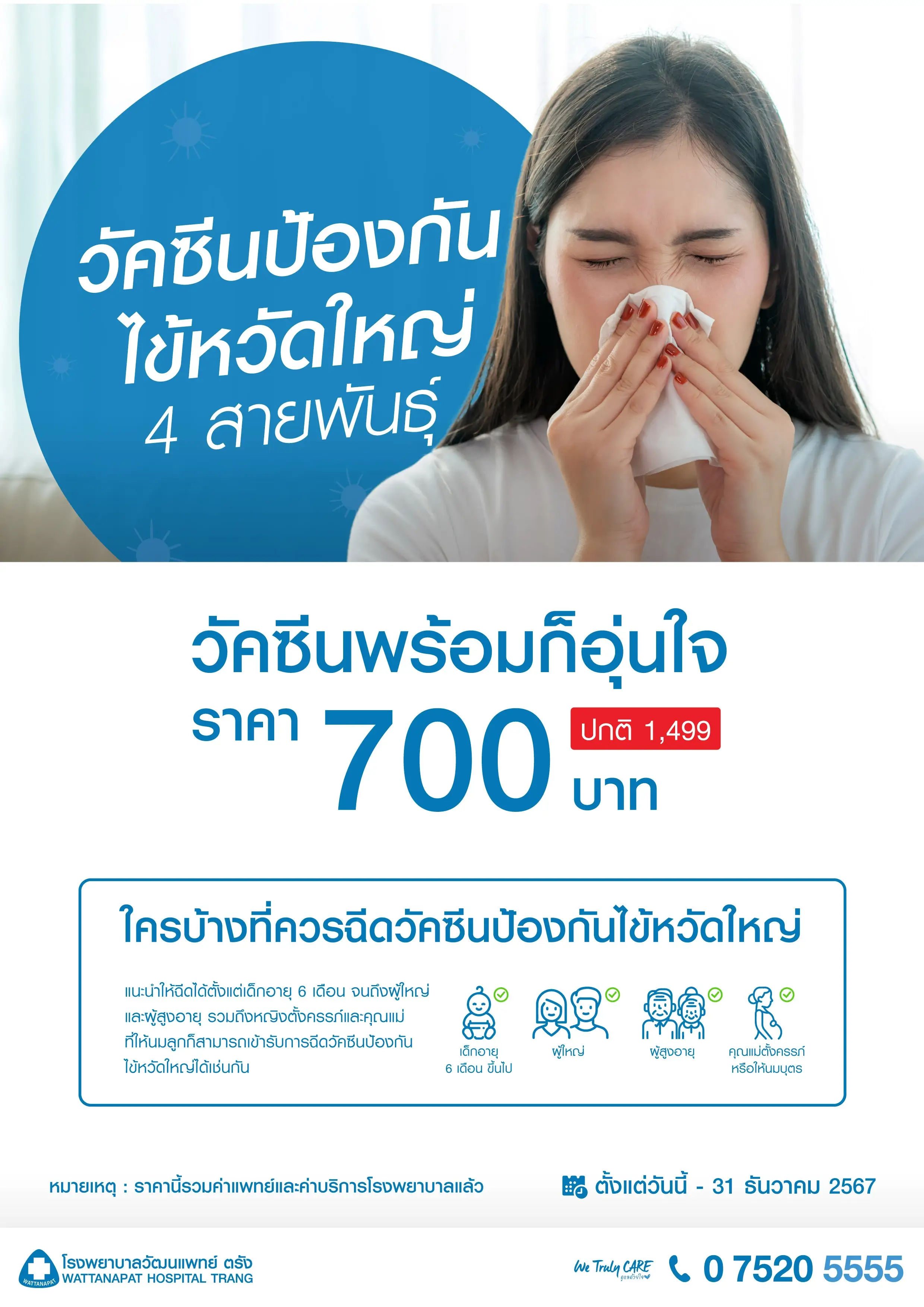 - หากป่วยเป็นไข้หวัดใหญ่ ควรหยุดงาน หยุดเรียน เป็นเวลา 3-7 วัน ซึ่งจะช่วยลดการแพร่ระบาดได้มาก