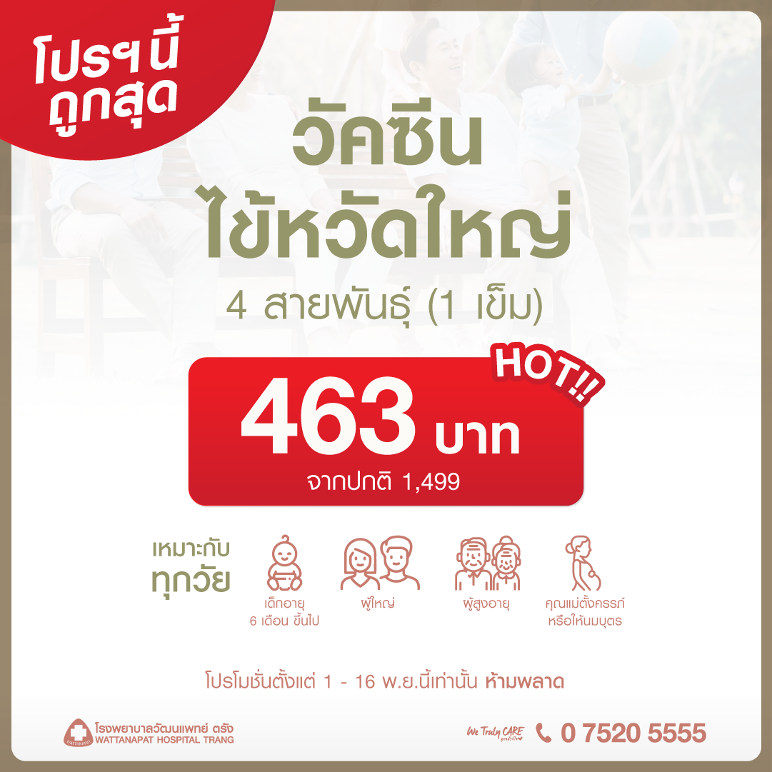 โปรโมชั่นวัคซีน ลดคุ้มส่งท้ายปี ระยะเวลาโปรโมชั่น: 1 – 16 พฤศจิกายน 2568 เท่านั้น
